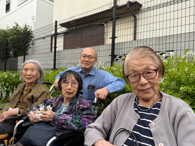 一時間ほどお散歩を楽しみ、最後に今年もお芋を植える予定の、ベルパージュ西宮北口の芋畑の様子を見て施設へ戻りました。