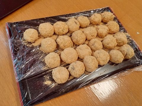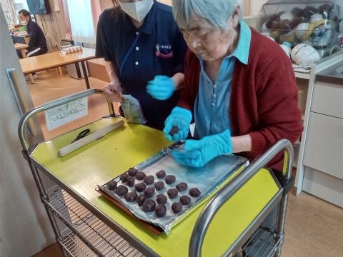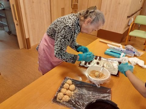 最後は、あんこが入ったお餅に、きなこを付けてもらいました!「早く食べたーい♪」と、ご利用者さま!!皆さま、喜んで召し上がられていましたよ♪