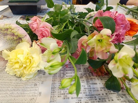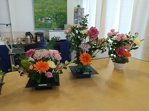 同じお花でも活け方によって個性が出て、それぞれ雰囲気の違う魅力的な作品が出来ました。