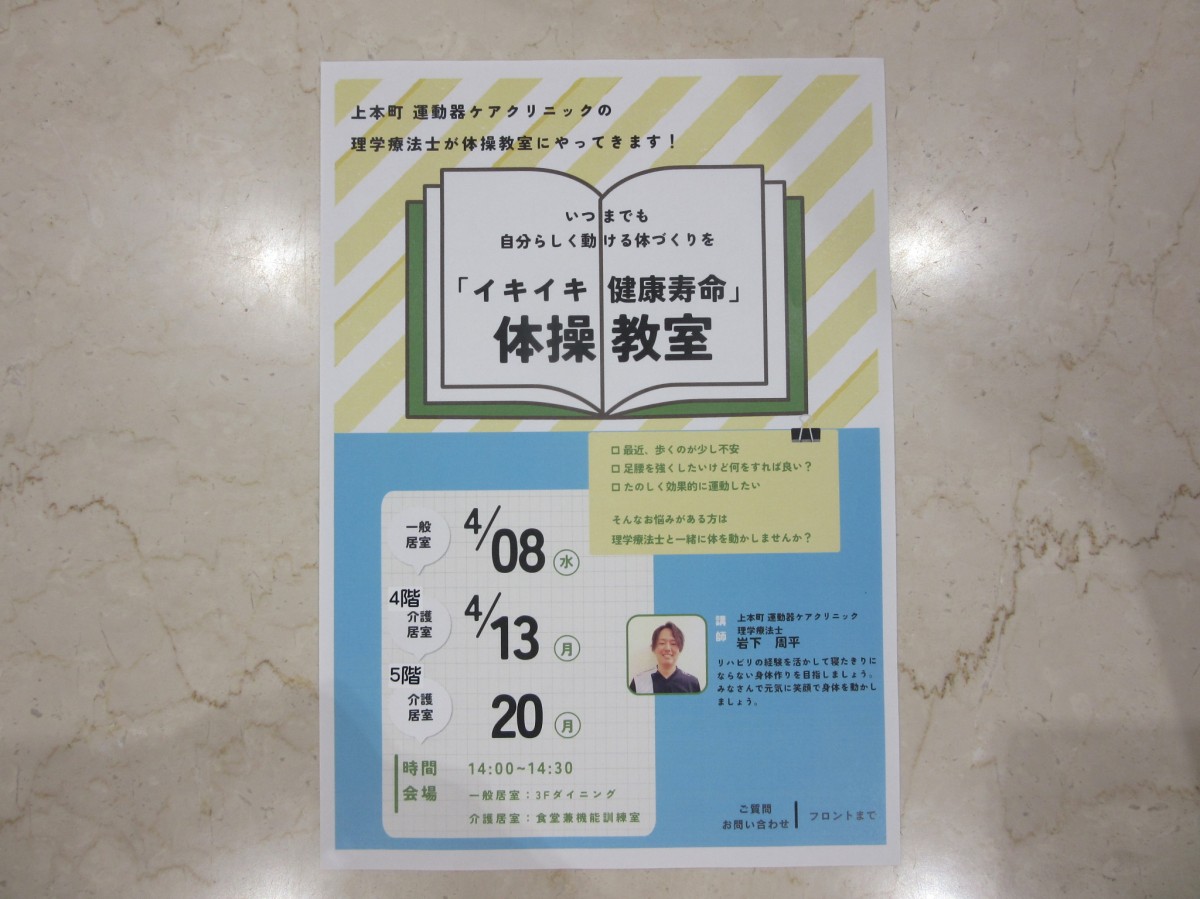 4月8日、ベルパージュ大阪上本町では、『イキイキ健康寿命 体操教室』を開催いたしました。