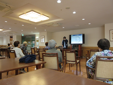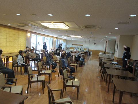 協力医療機関連携である運動器ケアクリニック様のご協力による、体操教室が始まりました。毎月1回、3階ダイニングと各介護フロアで開催します!クリニックでリハビリを担当されている理学療法士による分かりやすい説明と体操で、皆さま真剣に取り組まれました。