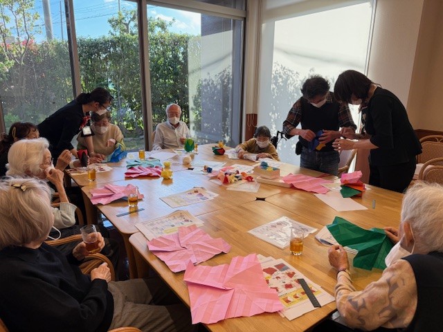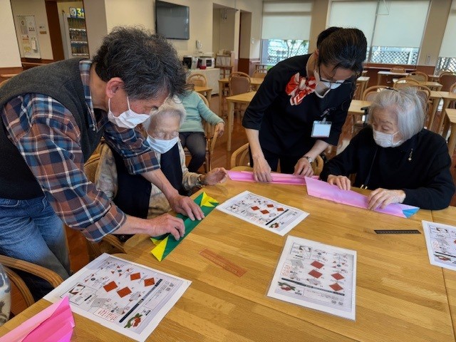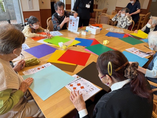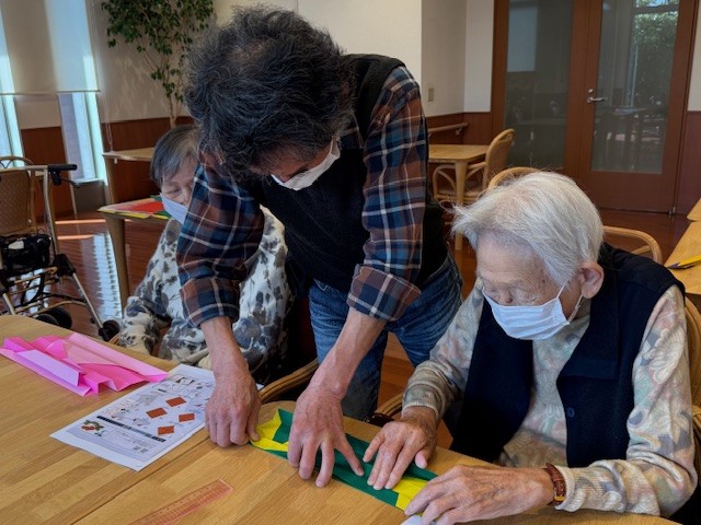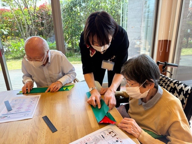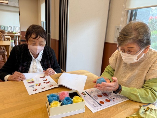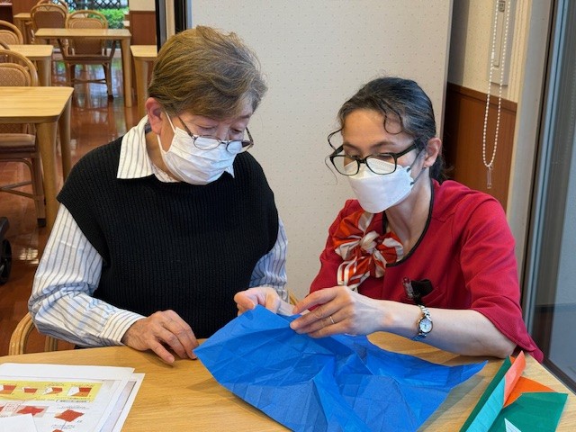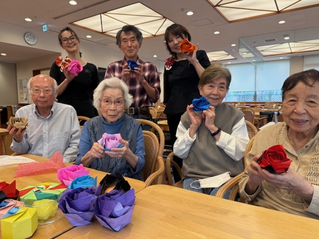 「薔薇を折り紙で折るのね♪楽しそうね」と当日を楽しみにしてくださるご入居者さま…