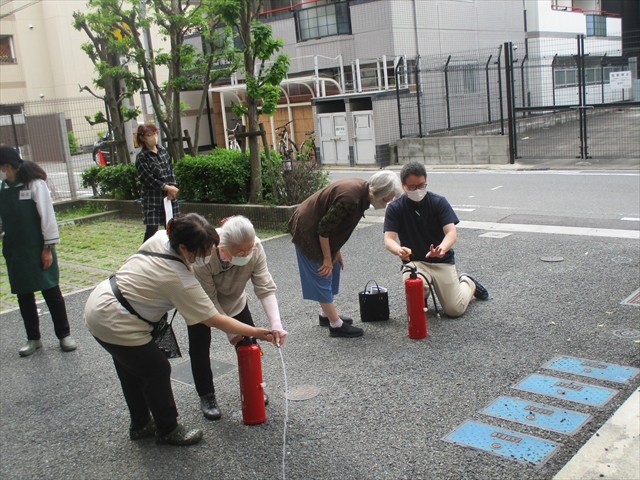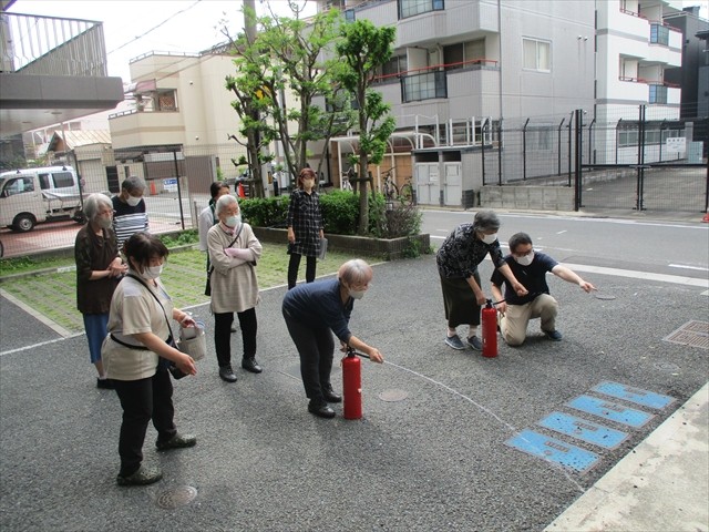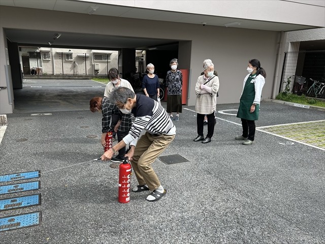 ご参加いただけましたご入居者さまより、「日頃から考えて行動しないと“いざ”って時に動けないですね。考える機会になってよかったです!」、「昔、消火器を実際に使った事があんねんけど・・・、何年も使ってなかったら自信が無くなるな~。消火器の練習ができて思い出したわ♪」「スタッフの皆さんと一緒にこういう考える機会があるのはいいですね♪安心します♪」等、お声をいただきました。