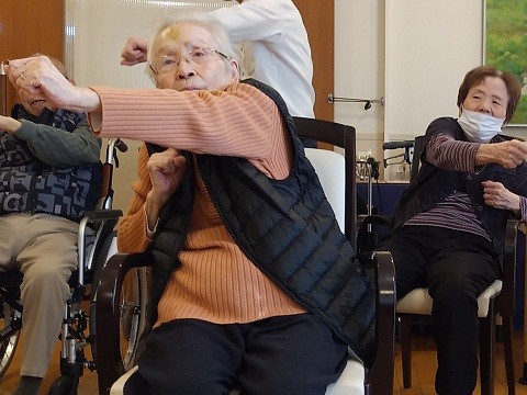 身体機能の維持・向上、介護予防を目的に専門スタッフがオリジナル体操を考案し指導して下さいました。
