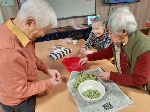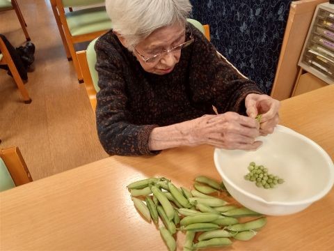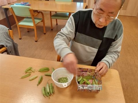 (淀川)季節のレクリエーション『えんどう豆の収穫』