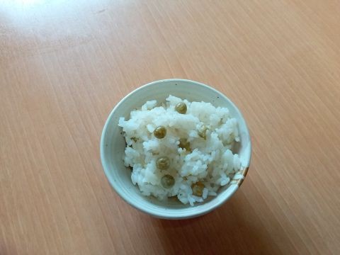 昼食に、えんどう豆ご飯を炊きました!「美味しいよ」と、皆さま喜ばれていましたよ♪