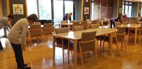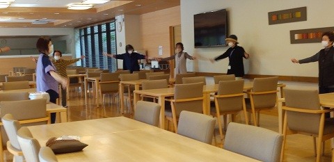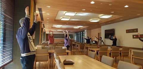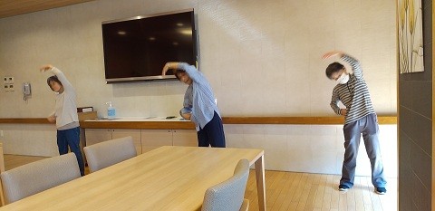 当施設では午前7:45~エントランス前、午後3:00~ダイニングにて「ラジオ体操第一、第二」を実施しています。