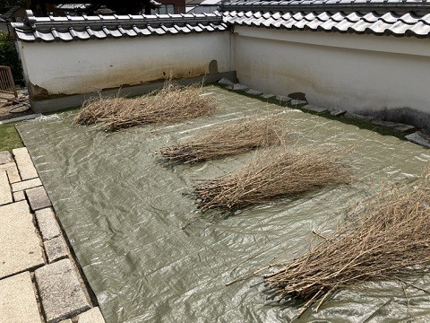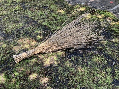第一回目となる今回は、お寺の歴史や庭造りの背景を学び、1年を通して使用する手帚を手作りしてきました。手帚を作成後は、苔の上に乗っている落ち葉掃きや、紅葉の剪定方法を教えていただきました。