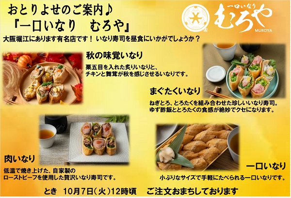 (西宮)今日のランチは柚子酢飯のおいなりさん♪『一口いなり むろや』