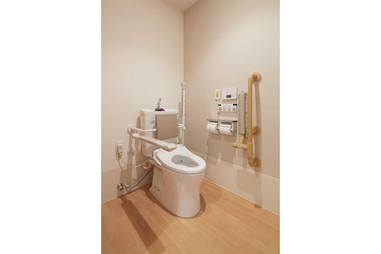 トイレ:補助がついた、介護が必要な方も安心してご利用いただけるトイレです。
