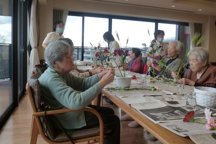 生け花レクリエーション:個性がでる生け花レクリエーション。