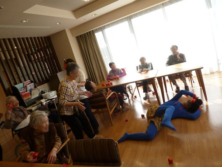 節分のまめまき:鬼の登場に、みなさま興奮!