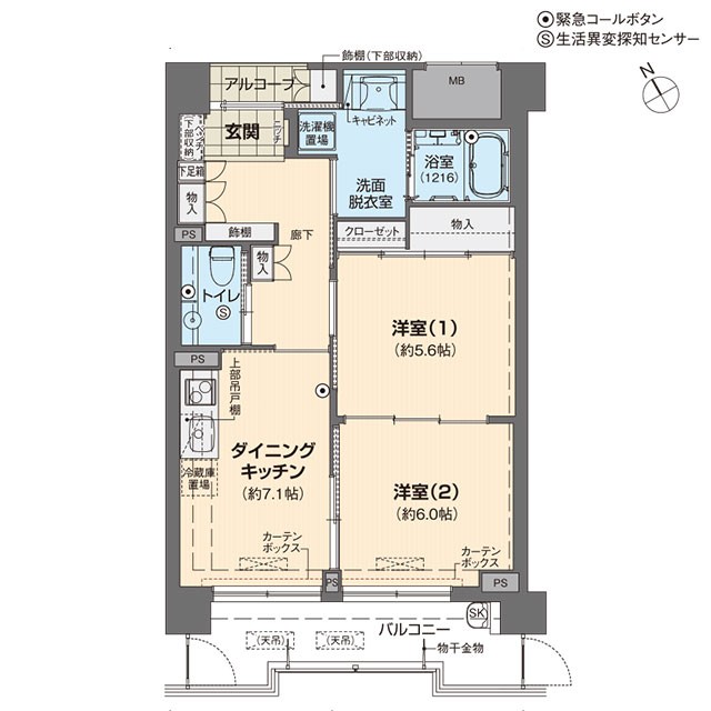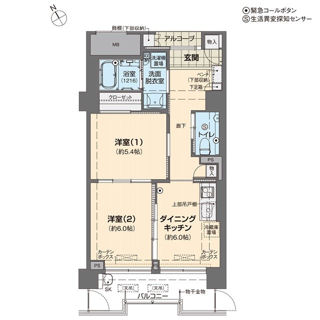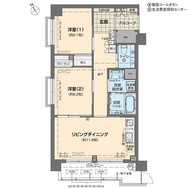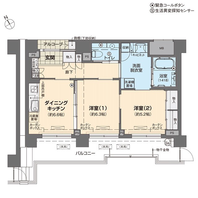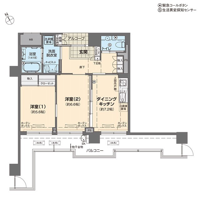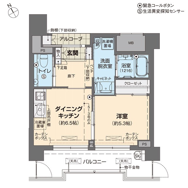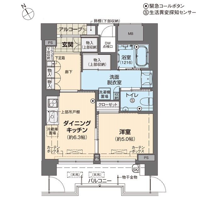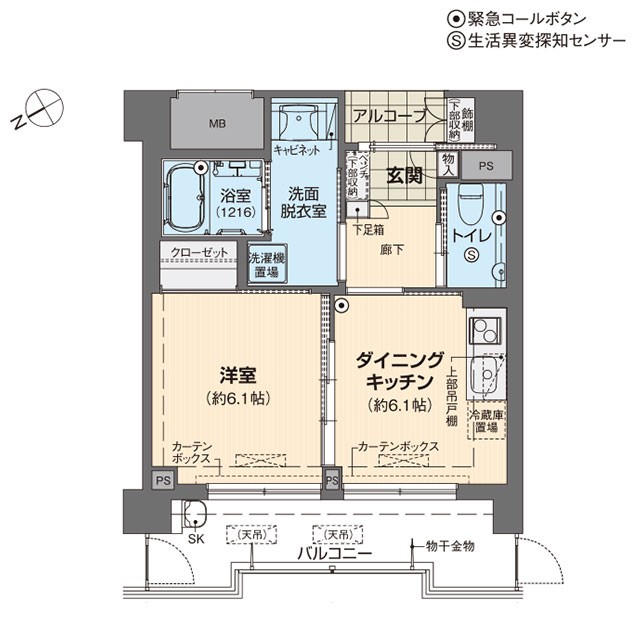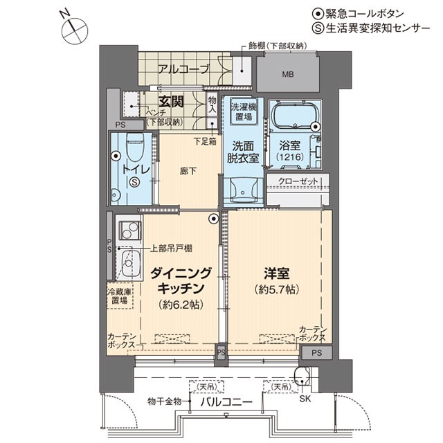 Aタイプ 1DKの例