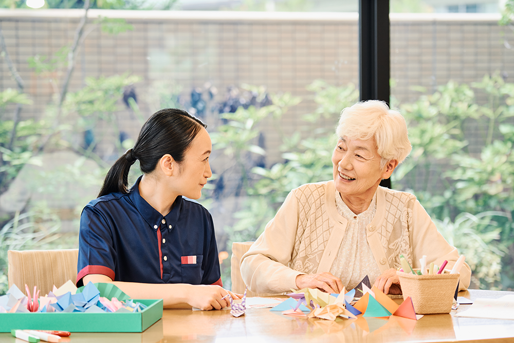 介護居室では、毎日の暮らしのサポートはもちろん、レクリエーションなどを、介護経験豊富な専任スタッフが24時間で対応いたします。