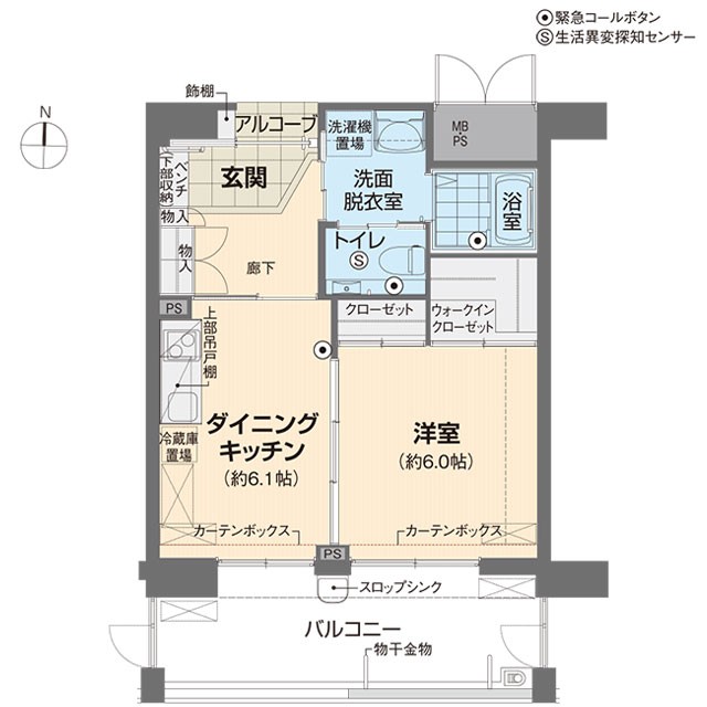 Aタイプ 1DKの例