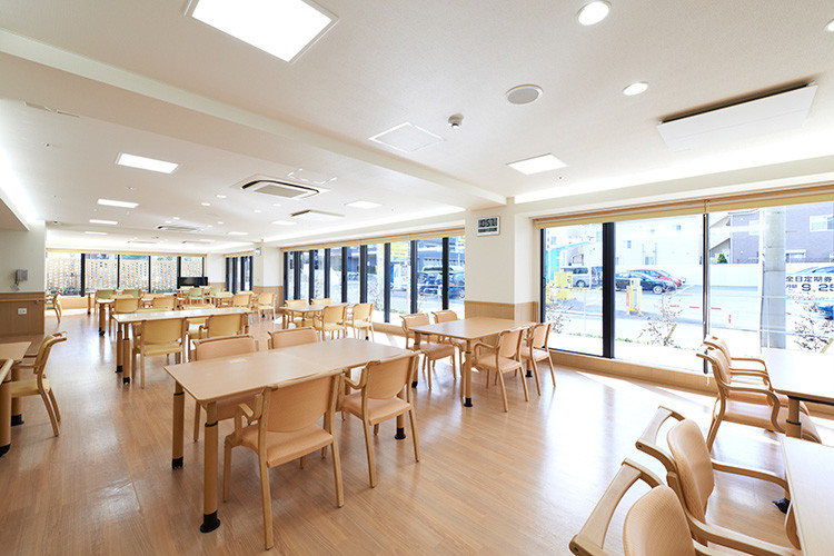 ダイニングルーム:南向きの明るいダイニングで、朝・昼・夕のお食事をご提供いたします。