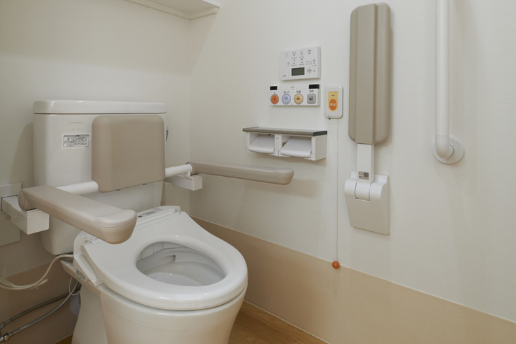 トイレ:補助がついた、介護が必要な方も安心してご利用いただけるトイレです。