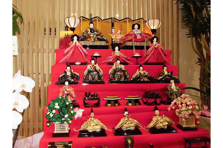 ひな祭り:施設のエントランスにひな人形を飾りました。
