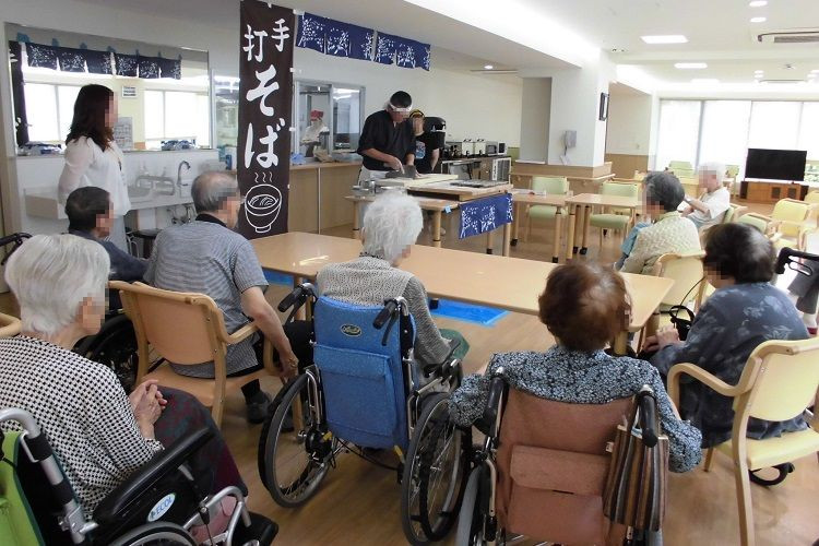 蕎麦打ちイベント:弊社スタッフが施設へ出向き、打ち立てのお蕎麦をご提供しました。