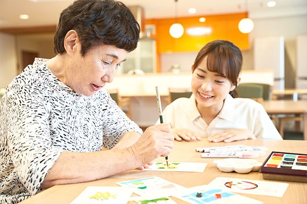 看護スタッフが24時間常駐しており、また、厚生労働省が定める特定施設入居者生活介護の基準に対し、2倍以上の手厚い看護・介護職員を配置(1.5:1)。安心の環境でお過ごしいただけます。