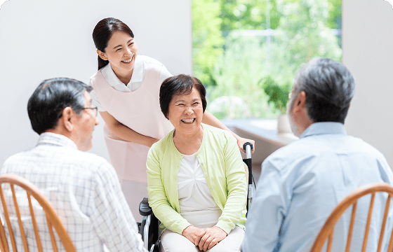 アクティビティーやレクリエーションを実施しながら、ご入居者さまが安全に、健やかに、楽しくお過ごしいただける介護付有料老人ホーム。スタッフが寄り添いながら介護サービスをご提供します。