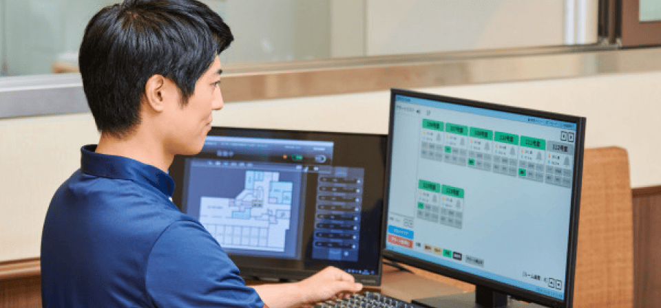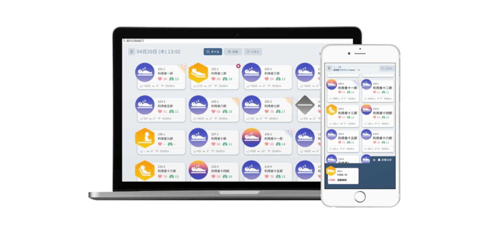 睡眠中のご入居者さまの状態を、スタッフがパソコンや携帯端末でリアルタイムに確認します。