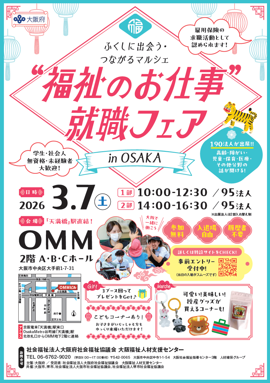 2026年3月7日(土)大阪府社会福祉協議会が企画する、「福祉のお仕事就職フェアin OSAKA~ふくしに出会う・つながるマルシェ~」に出展いたします🎉